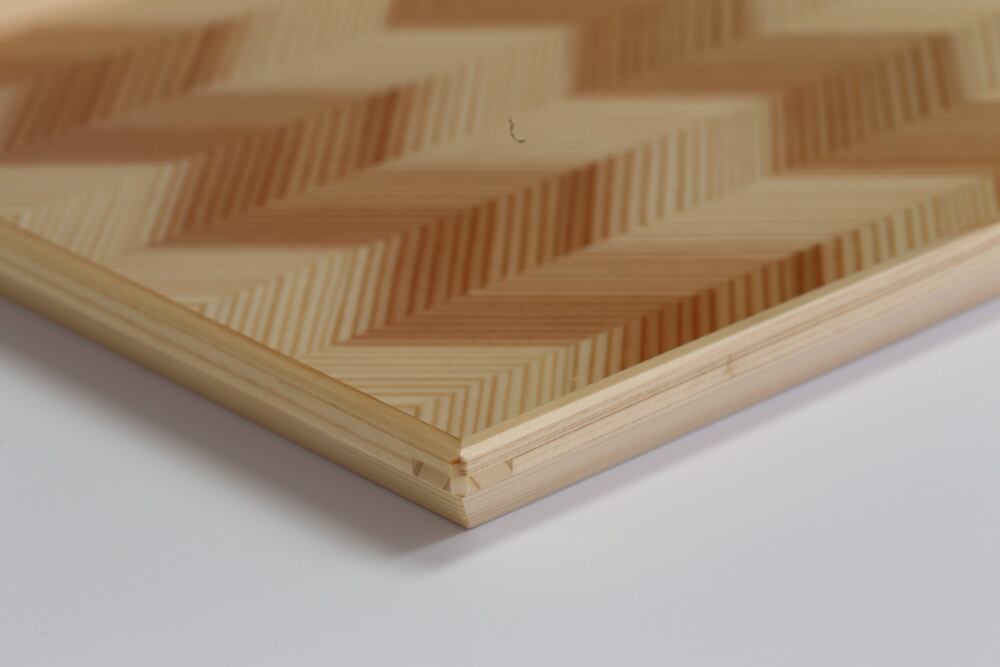 テキスタイルのように、美しくやわらかな東濃杉を織り込んだ「織物のような新しい木のカタチ」杉の木のぬくもり、軽さ、繊細な木目など それぞれが唯一の柄を持つ自然の織りなす木肌の美しさをお楽しみ下さい。