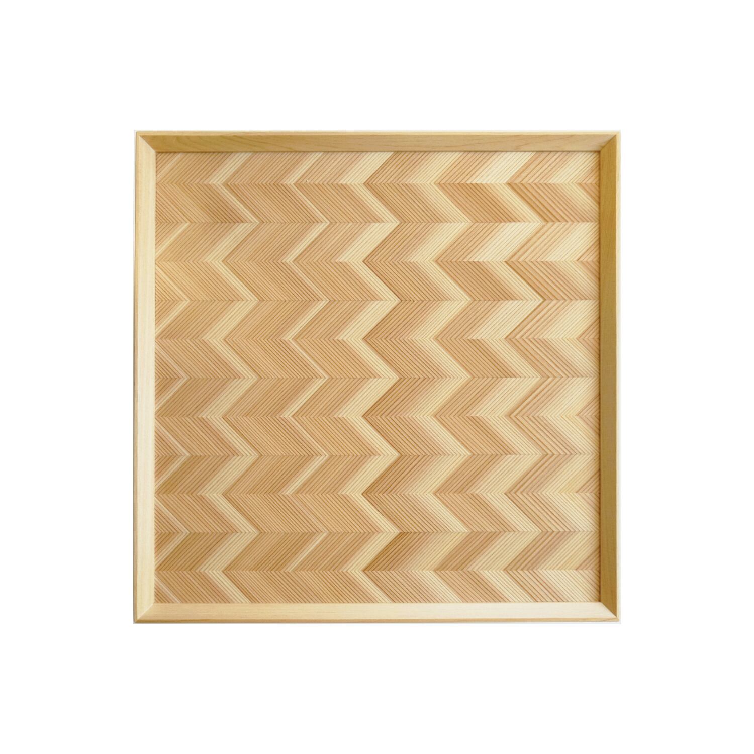 テキスタイルのように、美しくやわらかな東濃杉を織り込んだ「織物のような新しい木のカタチ」杉の木のぬくもり、軽さ、繊細な木目など それぞれが唯一の柄を持つ自然の織りなす木肌の美しさをお楽しみ下さい。
