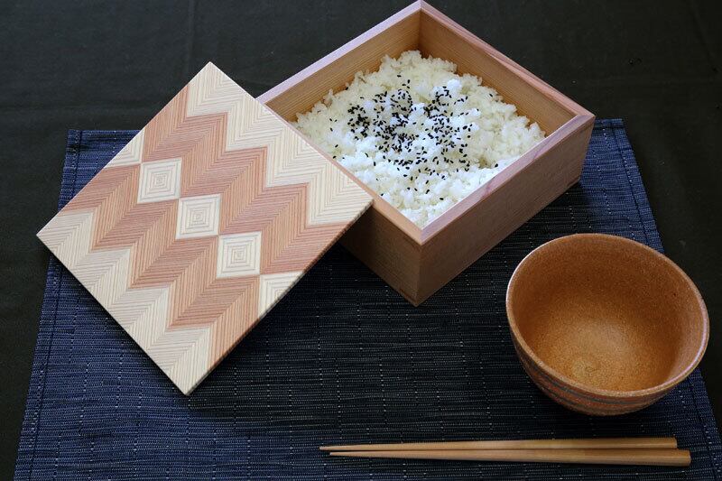 (中に入れる食材は汁物・油分の多いもの・味ご飯などは木に浸透し黒カビの原因となります)*レンジ使用の際は蓋を取りラップで包み500W・1分程度過熱してお召し上がり下さい。