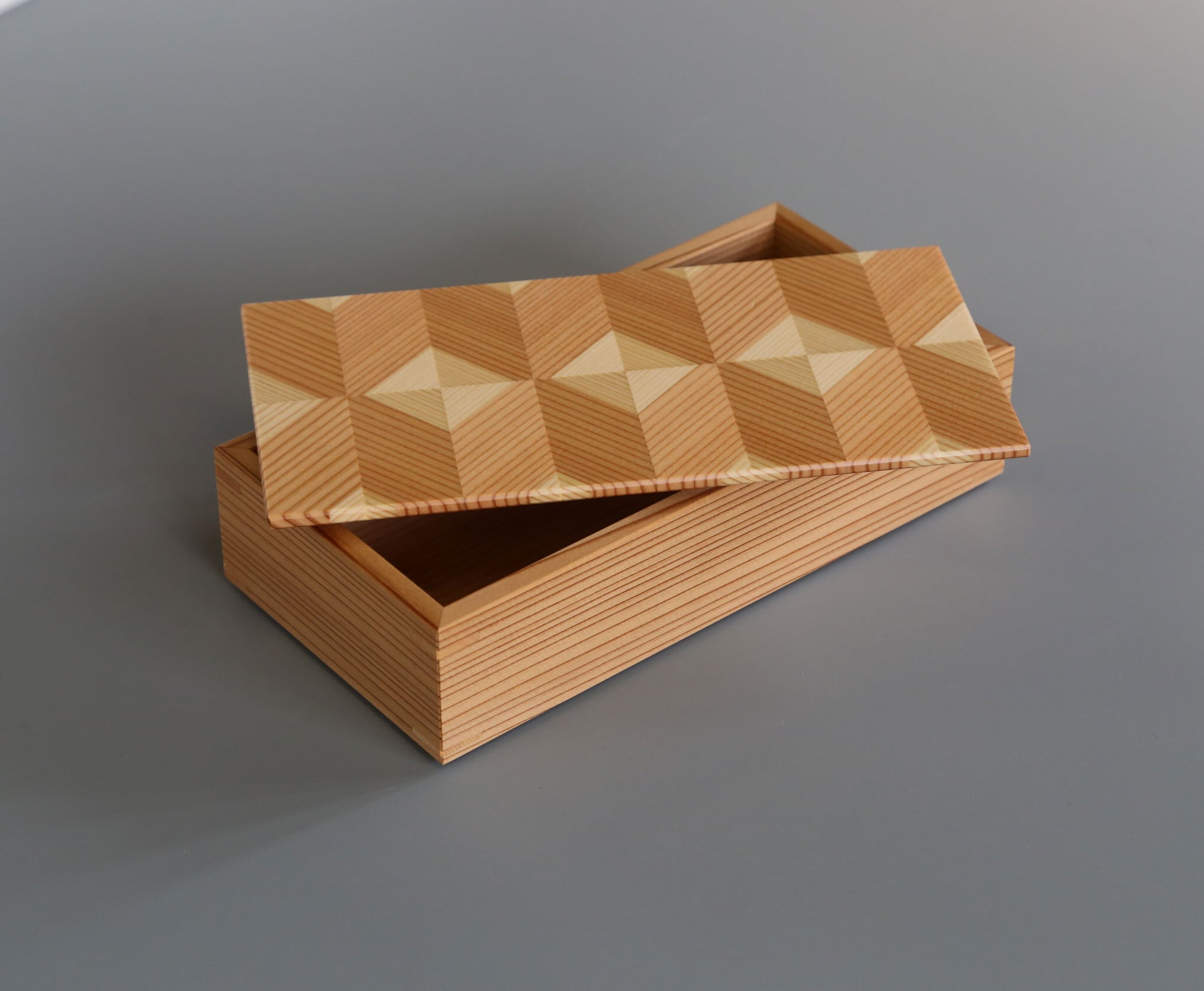「結粋」のお弁当箱は地元の木材を活用し製作した蓋は、テキスタイルのように美しくやわらかな杉の木を織り込んだ新しい木のカタチ。杉の色彩豊かな木目のデザインは食卓を楽しくスタイリッシュにしてくれます。至福の時間をお楽しみください。お手入れが簡単にできる様本体も全てウレタン樹脂でコーティングしてあります。