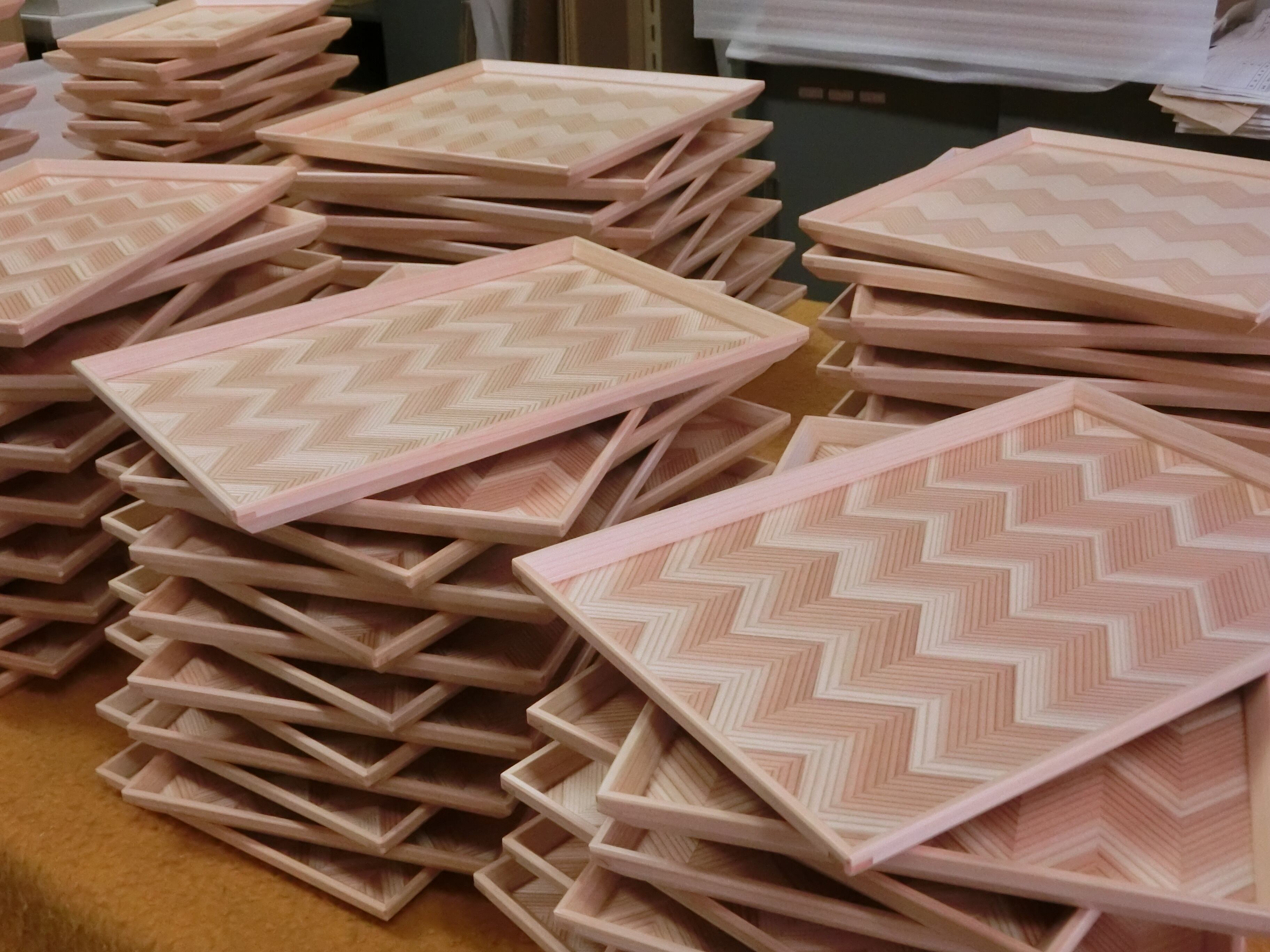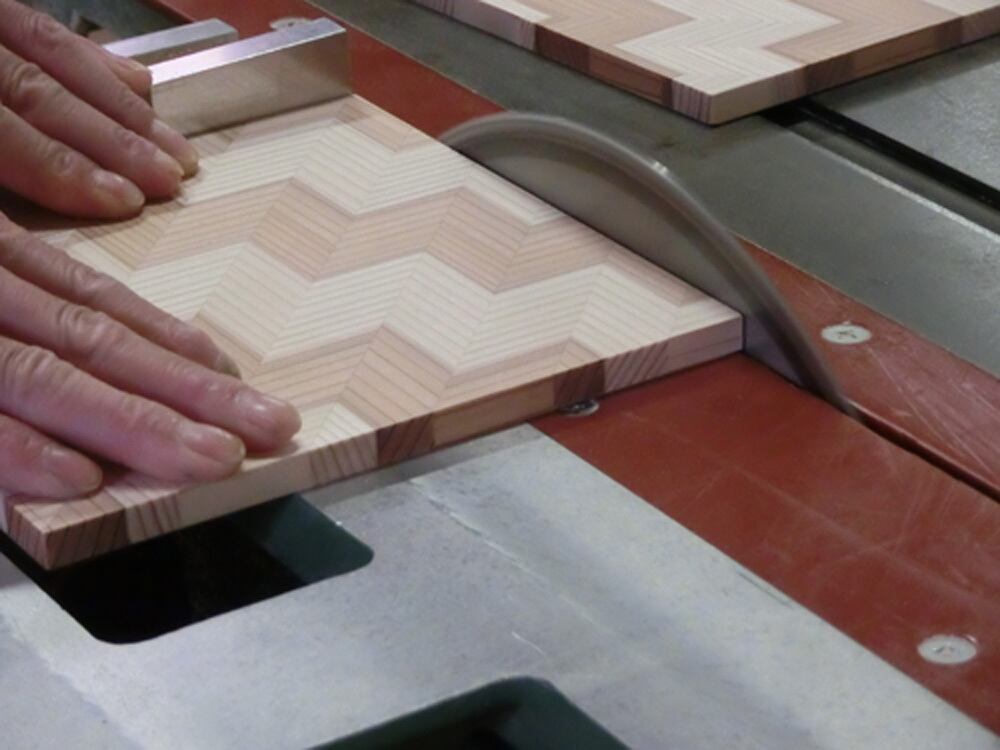 テキスタイルのように、美しくやわらかな東濃杉を織り込んだ「織物のような新しい木のカタチ」杉の木のぬくもり、軽さ、繊細な木目など それぞれが唯一の柄を持つ自然の織りなす木肌の美しさをお楽しみ下さい。